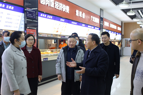 何爱军一行实地走访校园,检查了北区学生宿舍、北区学生食堂等安全工作重点区域,通过查看重点设备、与工作人员交流等方式详细督查、摸排安全隐患。在学生宿舍,认真查看了学生寝室、卫生间、洗漱间、晾衣间,重点检查了消防设施、电梯、安全通道、防火门等应急处置装置。在学生食堂,详细检查了餐厅后厨的卫生安全、消防安全、燃气管道安全和就餐窗口,仔细检查了食品原材料供应、物资储备、食品加工操作、就餐环境及菜品种类。
