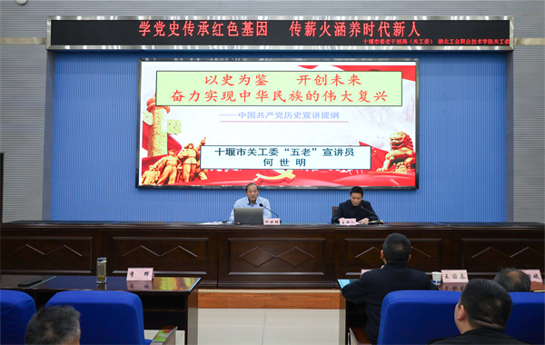 讲座邀请了十堰市委党校原副校长、市关工委“五老”宣讲员何世明教授进行授课。何世明教授以《以史为鉴,开创未来,奋力实现中华民族的伟大复兴》为题,用通俗易懂的语言、丰富的党史案例,带领大家从“救亡图存的艰辛探索、开天辟地的浴血奋斗和国家富强的辉煌成就”三个阶段,回顾了党的百年发展历程,共同追忆峥嵘岁月、感悟初心使命。