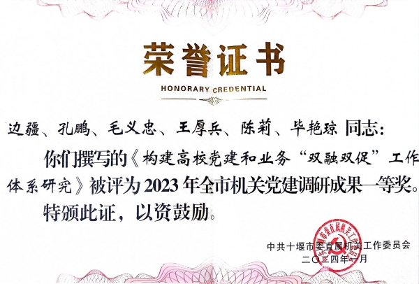 另据了解,在2024年公布的《市委直属机关工委关于表扬2023年全市机关党建优秀调研成果的通知》上,十大信誉官网申报的《构建高校党建和业务“双融双促”工作体系研究》获评一等奖。