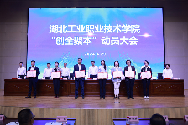 与会校领导为全省党建工作样板支部、全省平安校园建设工作成绩突出的两个集体代表,全国教师教学能力大赛获奖个人、全国职业院校技能大赛获奖指导老师、“互联网+”大学生创新创业大赛国赛获奖指导老师、全国“三下乡”实践示范团队指导老师、“创青春”青年创业大赛优秀奖指导老师、校联会“金课”“金师”团队负责人、“一校一课”展示活动课程负责人、2023年湖北省职业院校技能大赛获奖个人和指导老师、湖北省技能大师工作室负责人、湖北省技术能手、第一届全国大学生职规大赛指导老师、湖北省职业生涯咨询特色工作室负责人、2023年暑期“三下乡”社会实践活动优秀团队指导教师,以及2023年招生工作中取得突出成绩的集体和个人颁发了奖牌和荣誉证书。