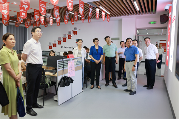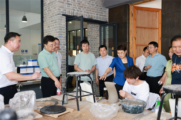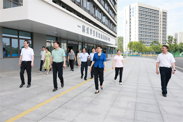 朱云慧一行深入产教融合大楼京东数字经济产业学院、百草园心灵花园、匠心忆园、一站式学生社区综合服务中心、艺术设计学院(绿松石产业学院)等地现场察看了教育教学设施、校园文化建设和学生服务管理等情况。