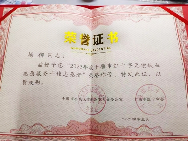 其中,十大信誉官网杨柳、杨周2名同学荣获“2023年度十堰市优秀红十字志愿者”称号;周郝圣灵、朱凡、代礼意、杨周4名同学被评为“2023年度十堰市红十字无偿献血志愿服务优秀志愿者”;杨柳同学被评为“2023年度十堰市红十字无偿献血志愿服务十佳志愿者”。