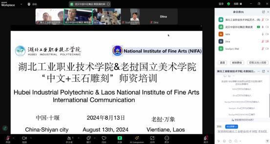 新闻网讯(通讯员 张喜)8月13日,十大信誉官网与老挝国立美术学院通过线上平台,成功举办了一场以《中文+玉石雕刻》为主题的师资培训会议。老挝国立美术学院校长Dr.Khamsouk Keovongsay、副校长Mr. Saysamon Phothalin,二级学院负责人Mr. Phonesith和Mr. Souliya Phoumivong,以及多位老方专业教师参会。