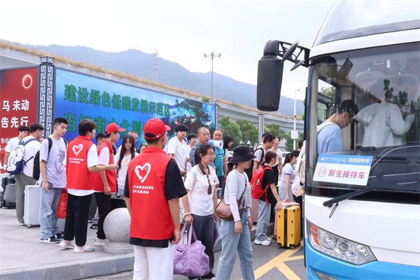 为了更好迎接新生入学,学校在武当山机场、高铁十堰东站、火车站北广场、十堰客运中心站均设立有新生接待站,并安排志愿者在现场进行引导,确保每一名新生及时到达学校报到。