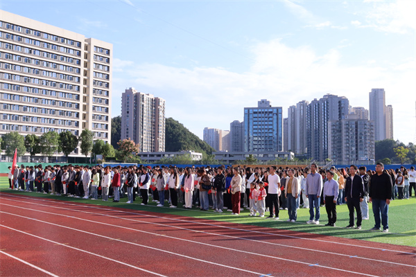 随后,全体学生集体合唱《我和我的祖国》,铿锵有力的声音,饱含着青春的力量和投身国家建设的庄严承诺。