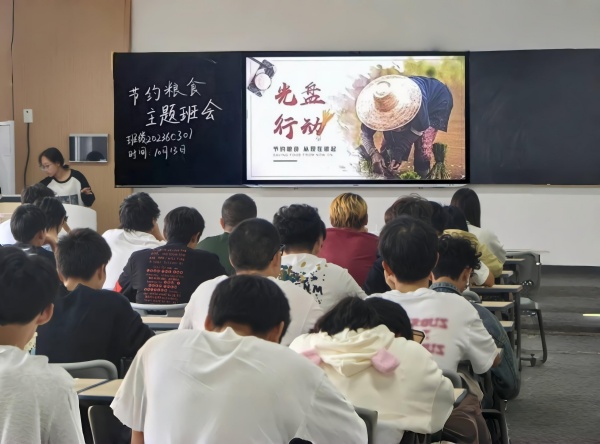 为确保节粮护粮理念深入人心,党委宣传部、学工处、后勤管理处及各二级学院协作联动,共同组织了一系列丰富多样的宣传活动。通过微信公众号、校园广播台等校内媒体向师生发布节约粮食倡议书,利用LED大屏和学生公寓LED显示屏,循环播放节约粮食的宣传短视频。同时在慧智广场悬挂节粮横幅、放置节粮宣传展板,营造了浓厚的节粮护粮氛围。各二级学院纷纷召开“珍惜粮食 拒绝浪费”主题班会、手抄报等多种形式的活动,全面宣传和推广粮食节约的理念。