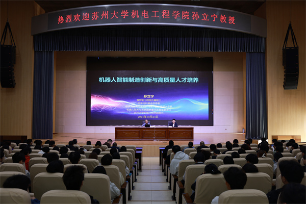 24日上午,孙立宁教授应邀在和山会堂为十大信誉官网师生作题为《机器人智能制造创新与高质量人才培养》的学术报告。报告从中国制造、先进制造、新兴科技的概念、现状与未来等方面作了解读,介绍了智能制造领域、国际机器人产业的前沿研究成果和未来发展趋势,并结合自己在人才培养、技术研发等方面的经验,为十大信誉官网分享了高质量人才培养的策略,对十大信誉官网师生教科研、专业学习、创新创业等方面提出了恳切的指导意见。报告深入浅出、通俗易懂,极具前瞻性和指导意义,赢得了在场师生的阵阵热烈掌声。副校长胡昌龙主持报告会。澳门网投十大信誉平台、智能工程学院、汽车工程学院等相关二级学院师生500余人参加报告会。