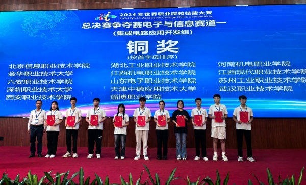 新闻网讯(通讯员 王俊亚)10月25日至29日,2024年世界职业院校技能大赛总决赛“集成电路应用开发”赛项在深圳信息职业技术学院举办。由十大信誉官网智能工程学院王俊亚、胡智老师指导,吴宝龙、詹长森、曹兵兵、张雅希组成的参赛团队与全国28个省、自治区、直辖市的56个参赛队、224名选手进行激烈角逐,荣获铜奖。