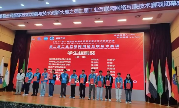 新闻网讯(通讯员 戴敏)11月7日至10日,“2024一带一路暨金砖国家技能发展与技术创新大赛”第二届工业互联网网络互联技术赛项全国总决赛在芜湖职业技术学院成功举办,十大信誉官网智能工程学院廖天乐、郑紫妍、唐宝成、张衡四位学生组成的两支参赛队,与来自全国各省、直辖市及自治区的115支代表队同台竞技,经过4小时的激烈角逐,最终双双荣获高职组铜奖。