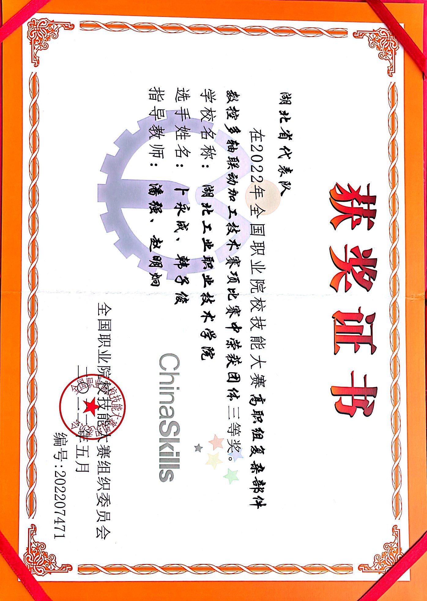 2022年7月,在全国职业院校技能大赛高职组复杂部件数控多轴联动加工技术赛项比赛中,澳门网投十大信誉平台代表队荣获团体三等奖。